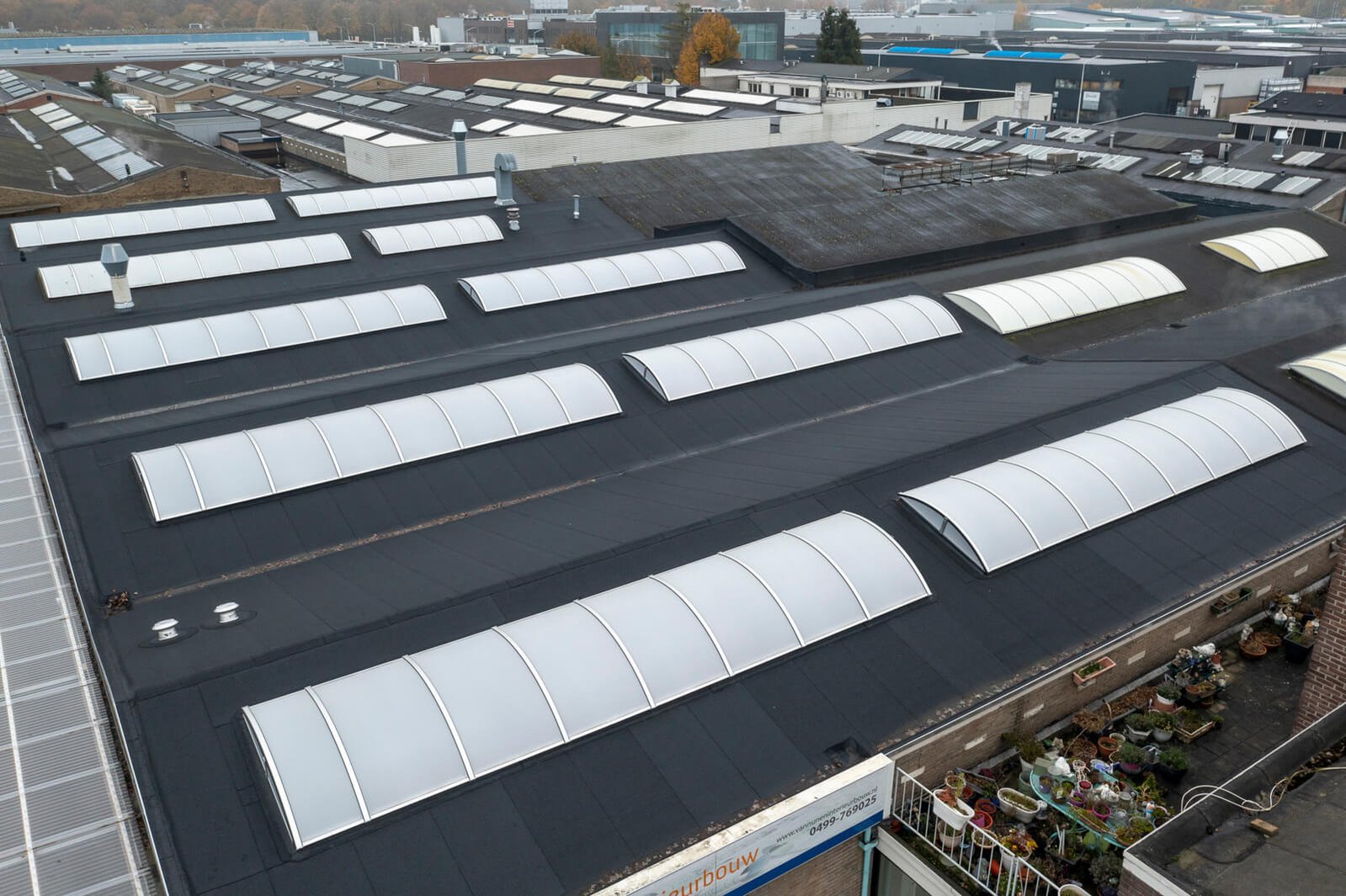 Maar liefst 1000m2 verduurzaming dakbedekking inclusief vernieuwing van bestaande lichtstraten.