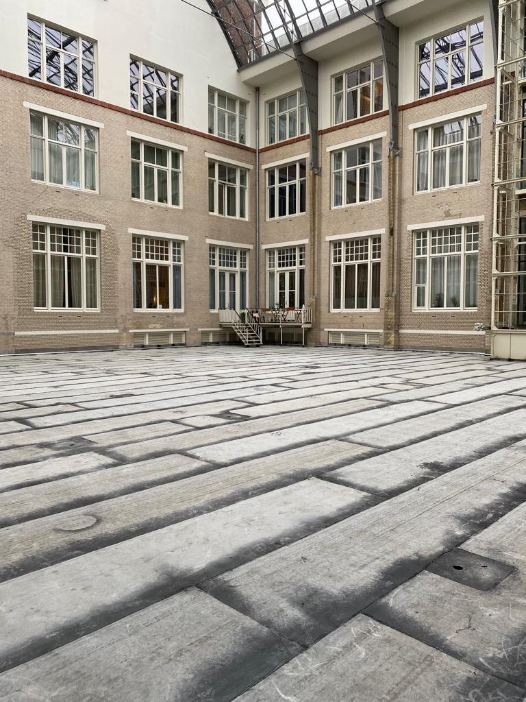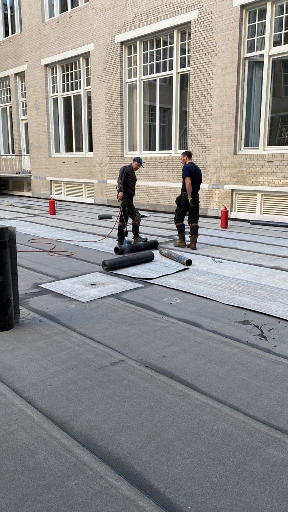 600 m2 kelderdak waterdicht ingewerkt door twee lagen bitumineuze APP-dakbedekking.